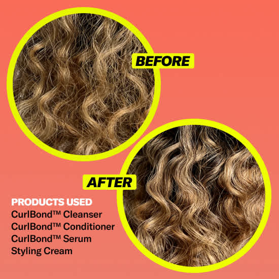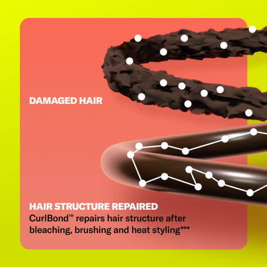 CurlBond™ provides 2x stronger curls*, 55% less breakage*, + repairs hair structure from bleaching, brushing, + heat styling**